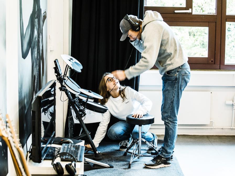 Musikbiblioteket rummer både et helt nyt digitalt piano med vægtede tangenter, et trommesæt (spørg efter trommestikker ved skranken), el-guitarer og bas, som alle er velkomne til at benytte.