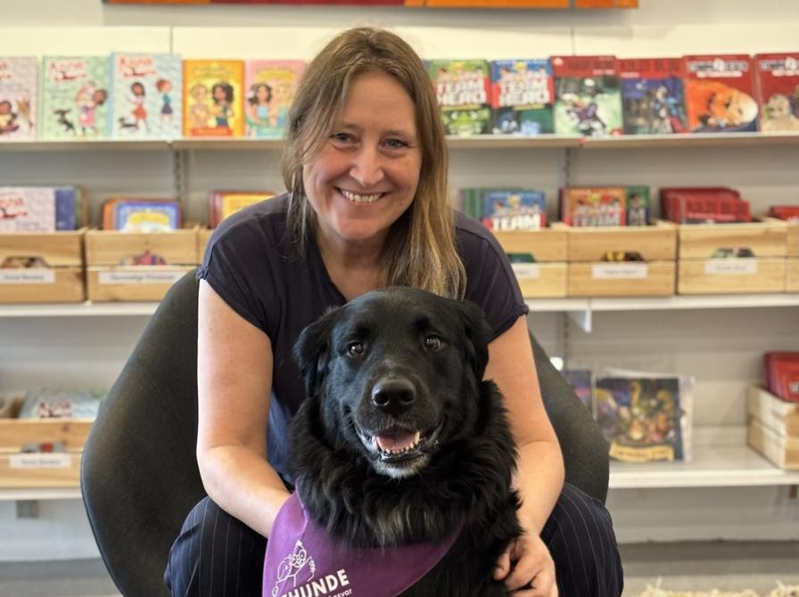 To dejlige hunde og deres ejere har meldt sig frivilligt på Gladsaxe Hovedbibliotek. Så nu kan børn, der har svært ved at finde motivationen til at læse, "gå til læsehund".